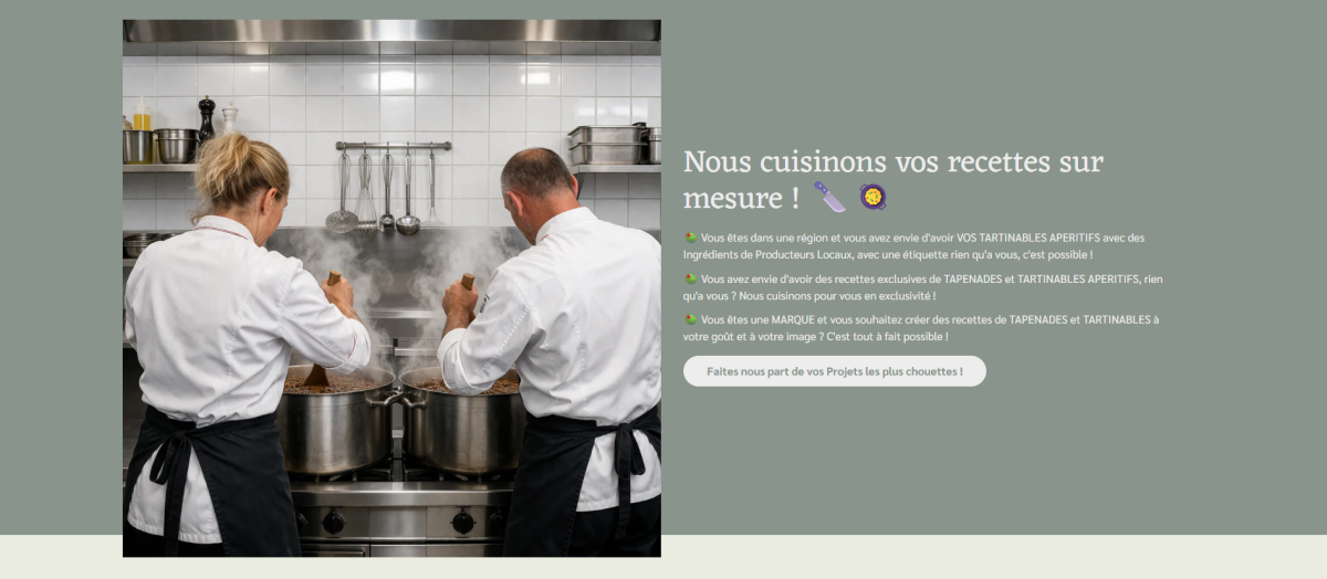 Nous sommes la seule fabrique artisanale française de Tapenades et Tartinadettes dirigée par deux Chefs de cuisine, et ça change tout.